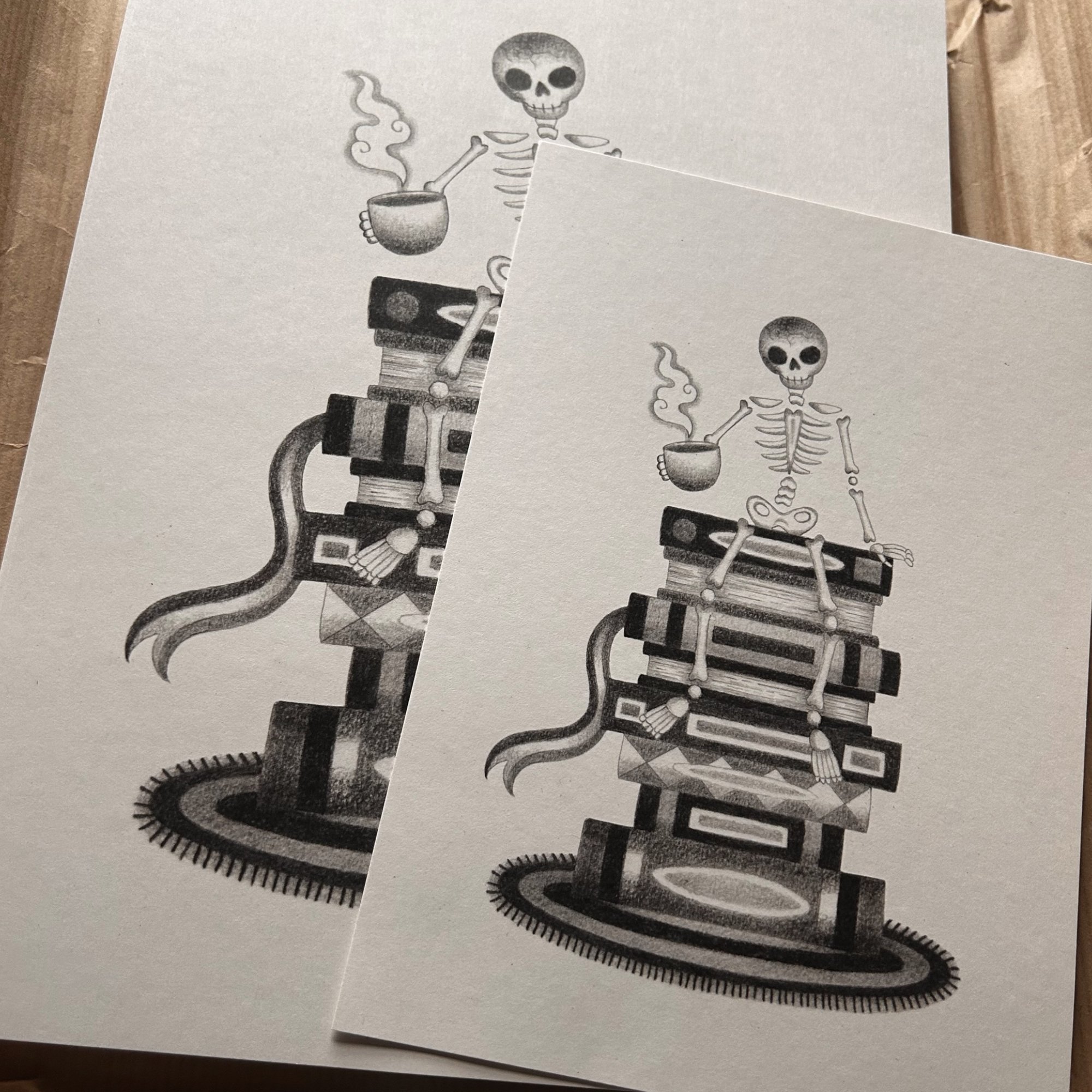 A lil’ spooky skeleton friend to guard your book shelf.